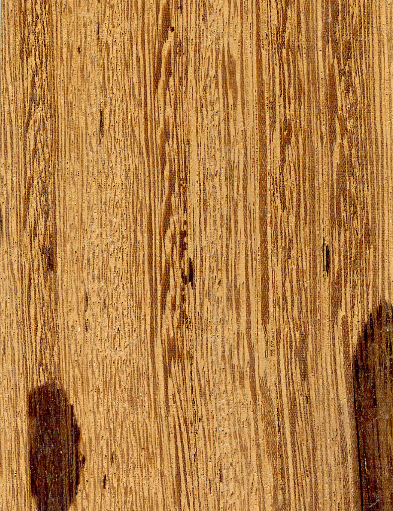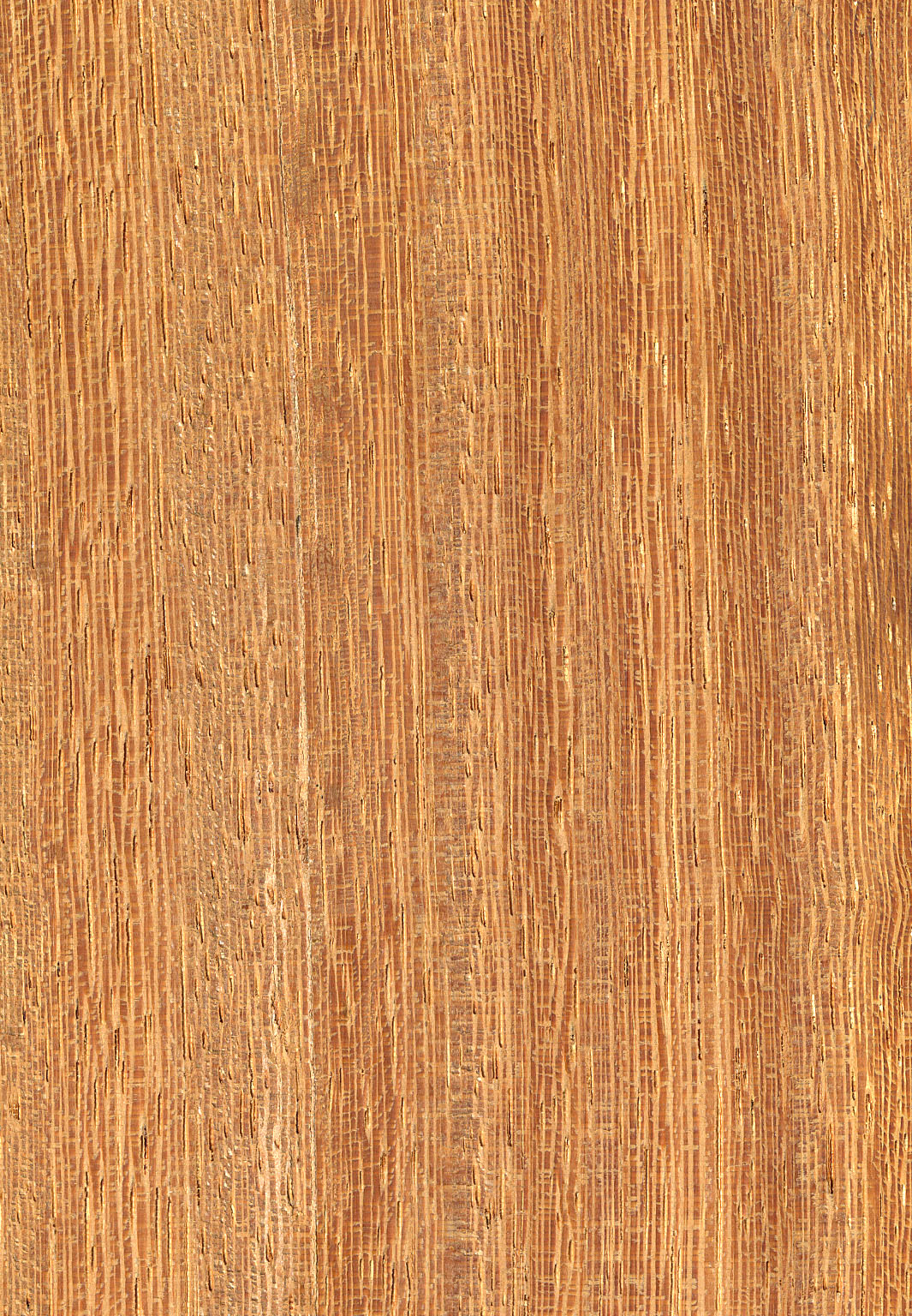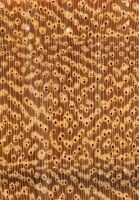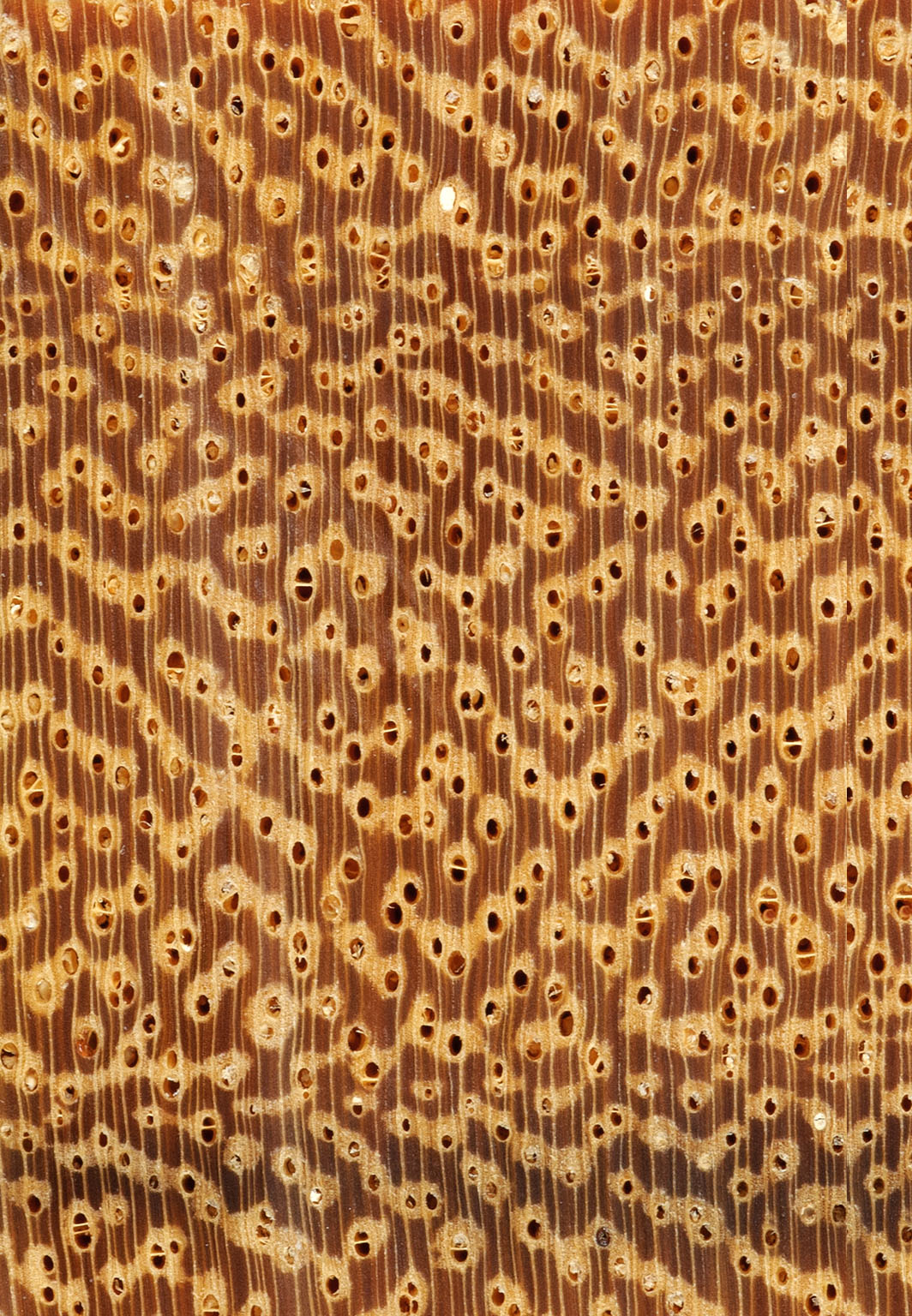 Farblich variables und auff ällig strukturiertes Holz von grober Textur, auf tangentialen Flächen dekorativ gefl adert; auf radialen Flächen mit deutlichen Glanzstreifen.