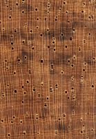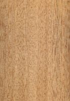 Farblich wie strukturell überwiegend homogenes Holz von grober Textur und geringer bis mittlerer Dichte; Holzbild schlicht, selten mit Glanzstreifen durch Wechseldrehwuchs auf radialen Oberflächen.