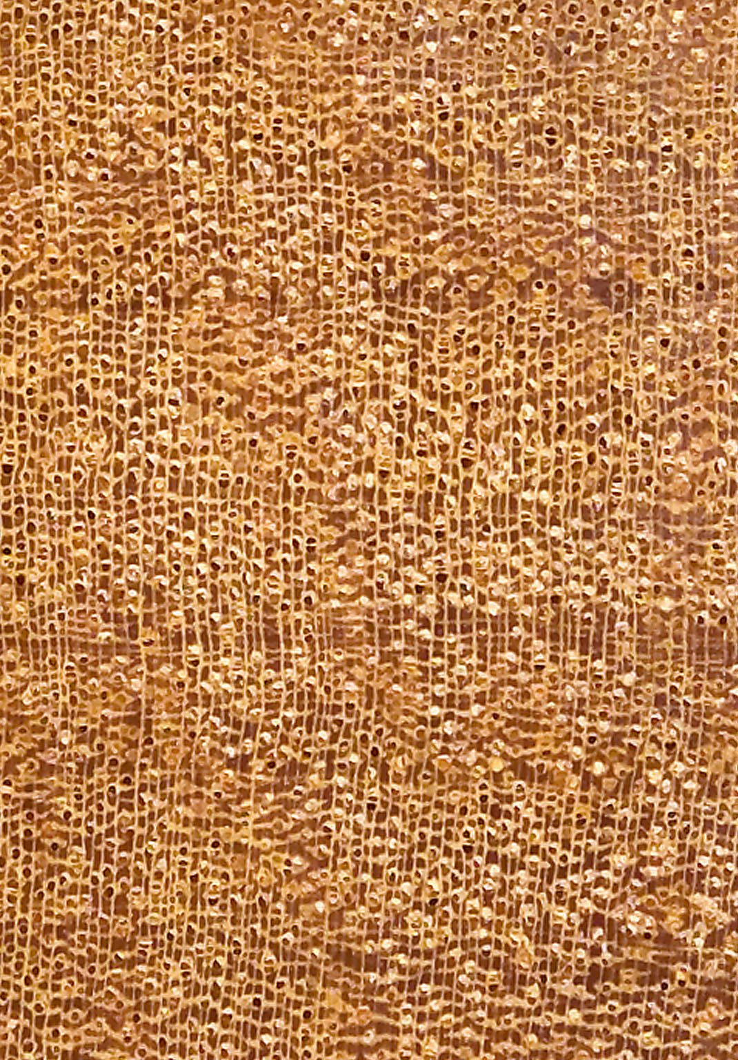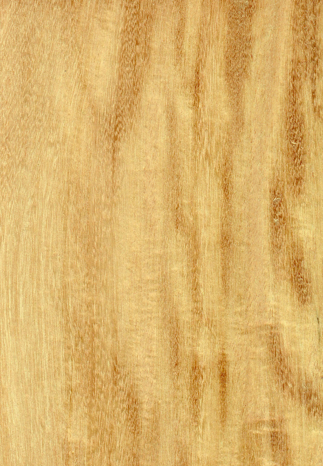 Frisches Kernholz honiggelb, später zu gelblich braun oder goldbraun nachdunkelnd, nicht immer deutlich abgesetzt vom cremefarbenen Splintholz. Zuwachszonen-Grenzen angedeutet; Faserverlauf wechseldrehwüchsig, oft auch sehr unregelmäßig; trockenes Holz ohne charakteristischen Geruch.