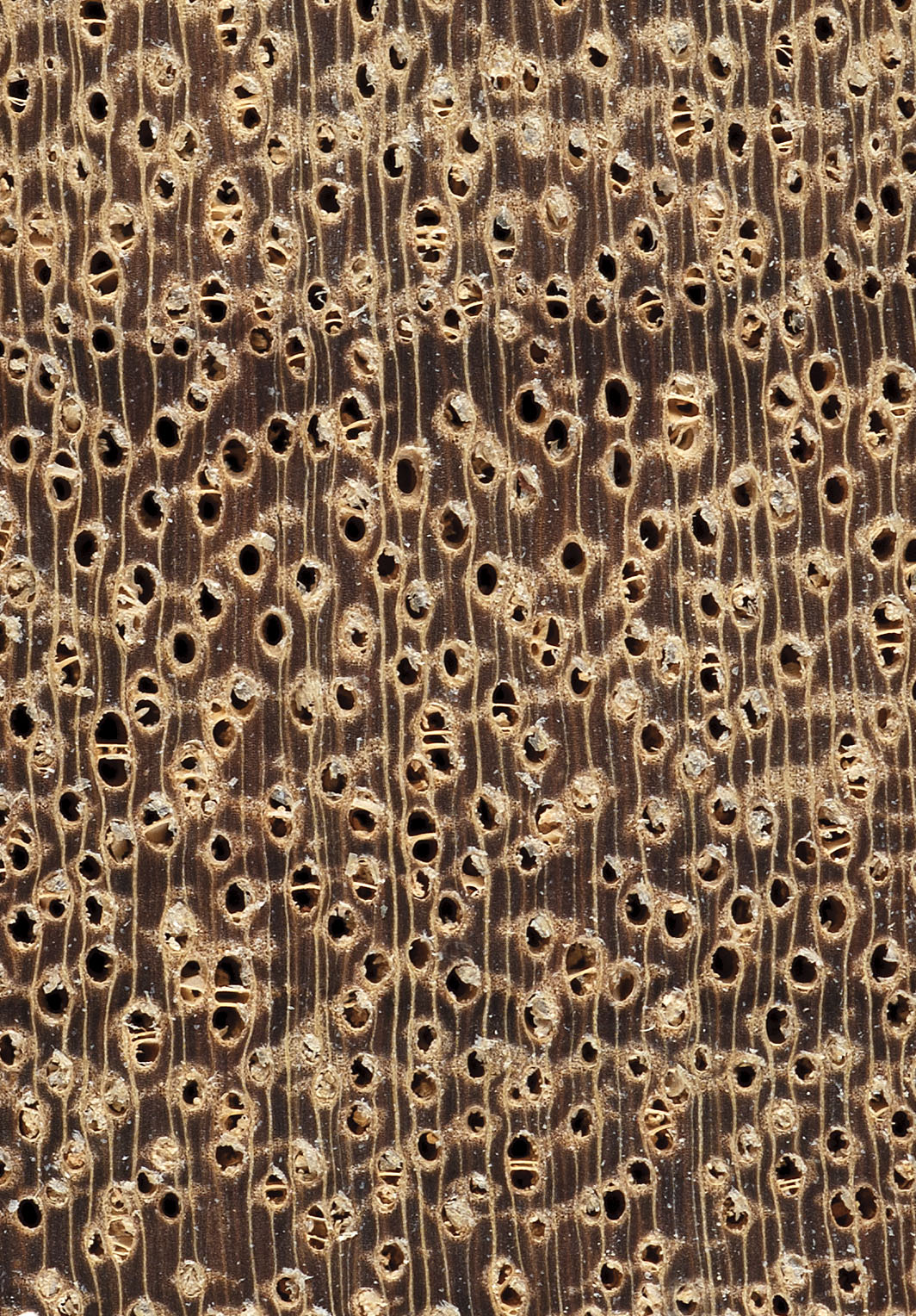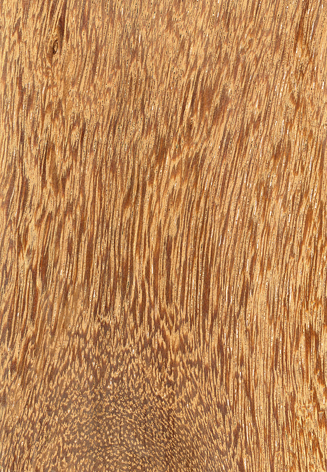 Gelblich- bis rötlichbraunes Holz mit poriger Struktur und meist unauffälligem Holzbild.
