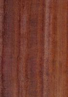 Kernholz lebhaft rot oder weinrot, mitunter mit helleren Streifen, unter Einfluss von Licht und Sauerstoff zu tiefem rotbraun nachdunkelnd; deutlich abgesetzt vom blass gelblichen Splintholz. Holz zerstreutporig, Poren mittelgroß und zahlreich, vielfach mit Thyllen und organischen Inhalten. Speicherzellen augenförmig geflügelt, durch die etwas hellere Farbe vom dunklen Fasergewebe abgesetzt; Holzstrahlen unauffällig, das Holzbild nicht beeinflussend. Holz meist mit deutlichem Wechseldrehwuchs, bei Bearbeitung mit schwachem, aromatischen Geruch.
